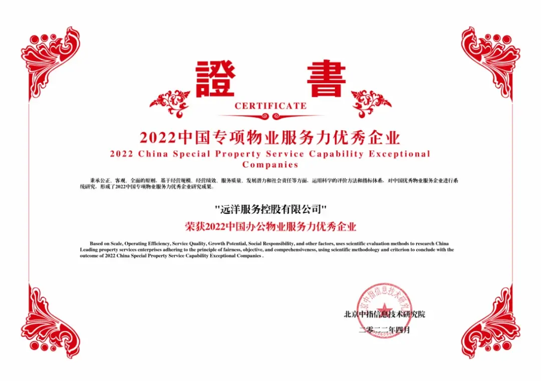 对于物业公司来说,相对于住宅物业的管理,商写物业业态的进入壁垒更高,同时对物业公司的综合管理能力要求更高。2021年,远洋服务注入远洋集团商写资管业务,在写字楼的轻资产业务中,传承远洋不动产基因,打通物管及资管全周期闭环,成为远洋服务业绩发展新引擎。2022年,远洋服务被评为“2022中国办公物业服务力优秀企业”。